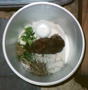 One more point, when changing Peter's "Sock Suit", we give him a full body rub down and massage. It's really comical, as Peter seems to go bonkers with pleasure as you rub and massage him. We've found that one week is about the time limit for changing the "Sock Suit", or sooner if it's soiled.